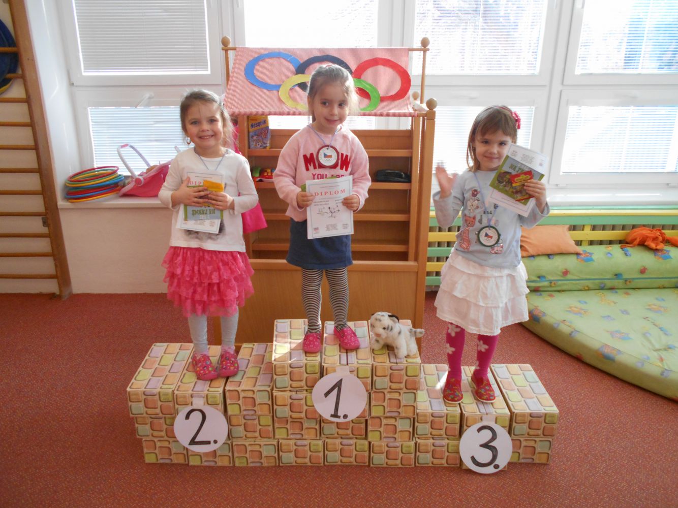 Protožed probíhají Zimní Olympijské hry, museli jsme si některé sporty ve školce také vyzkoušet. Lyžovali jsme, krasobruslili, vyzkoušeli jsme si Curling a nakonec týdne jsme si rozdali medaile a malé odměny. Olympiáda nás moc bavila :)